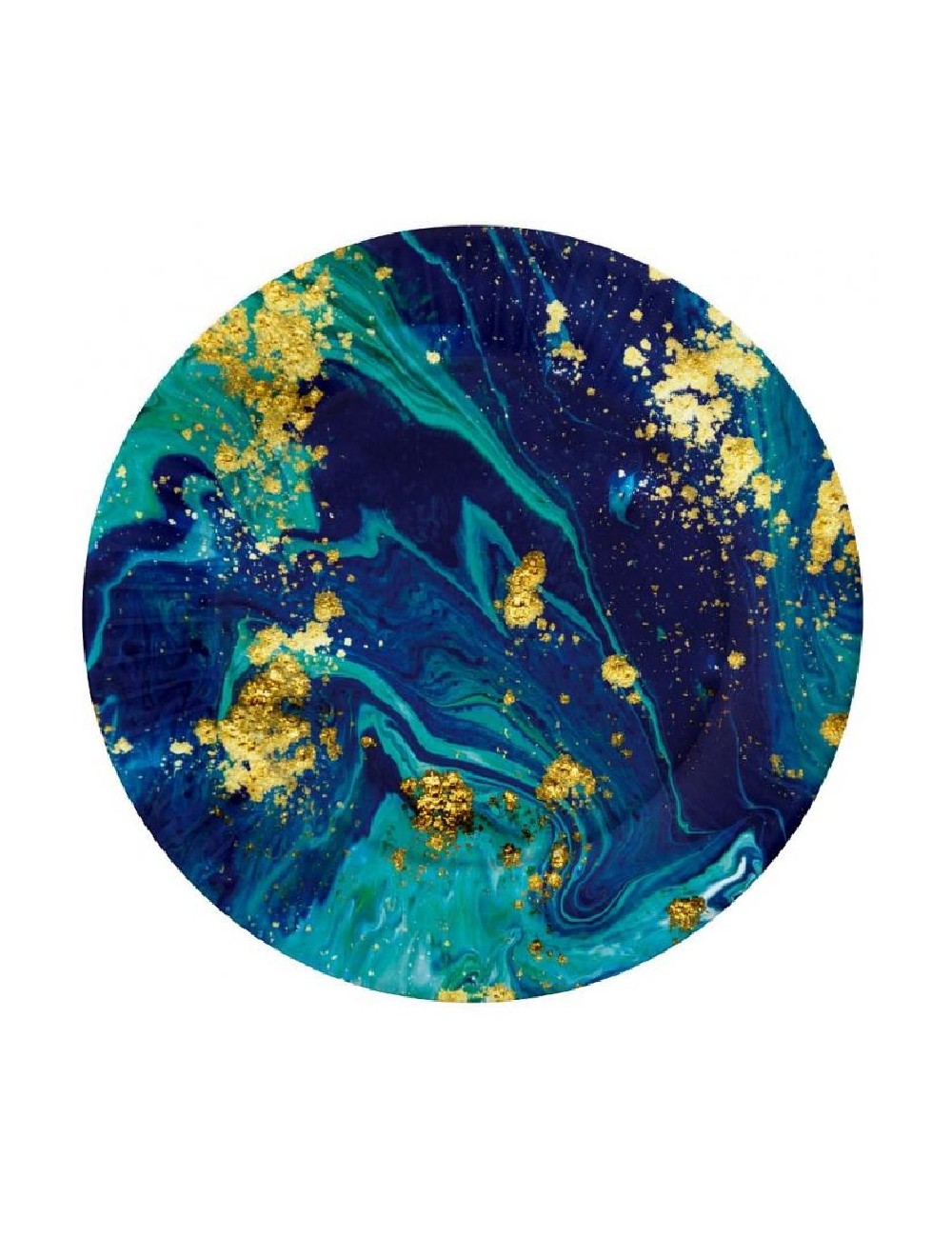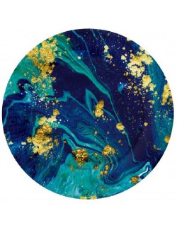 Set 6 farfurii party, Midnight blue, diametru 18 cm, de unica folosinta, fabricate din carton, nuante de albastru si auriu.