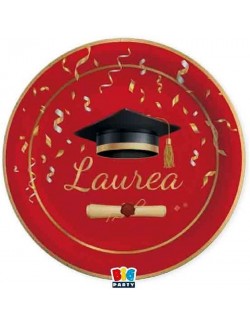 Set 8 farfurii Absolvire - Laurea Glamour, diametru 24 cm, culoare rosie, de unica folosinta, fabricate din carton, nu contin plastic.