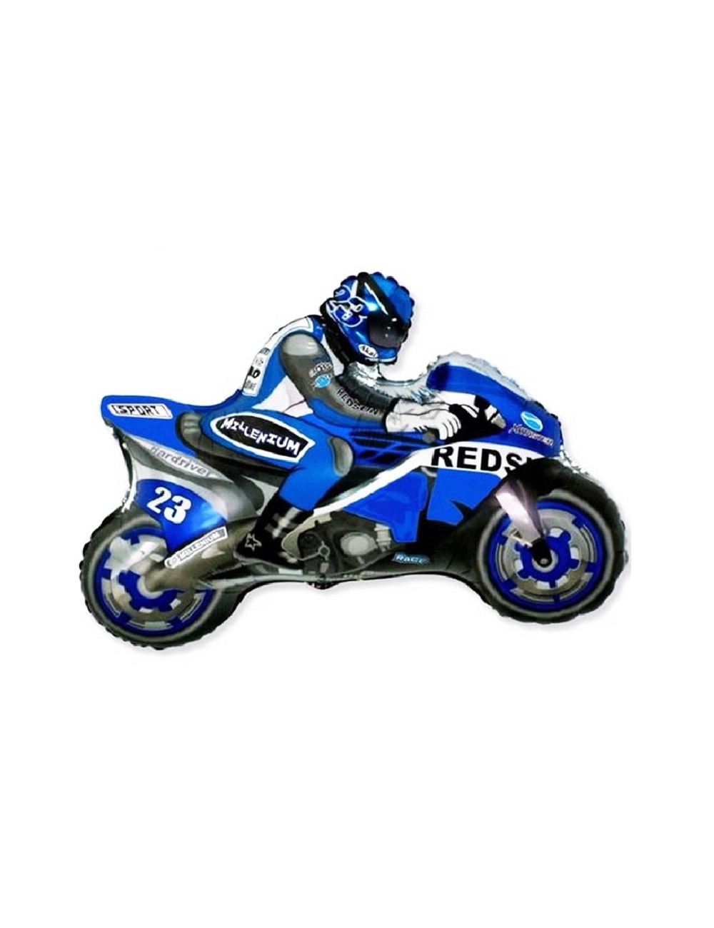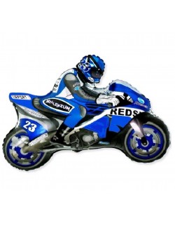 Balon Motocicleta de curse, albastra. dimensiuni 31 x 23 cm, din folie metalizata, imprimeu identic fata-verso.