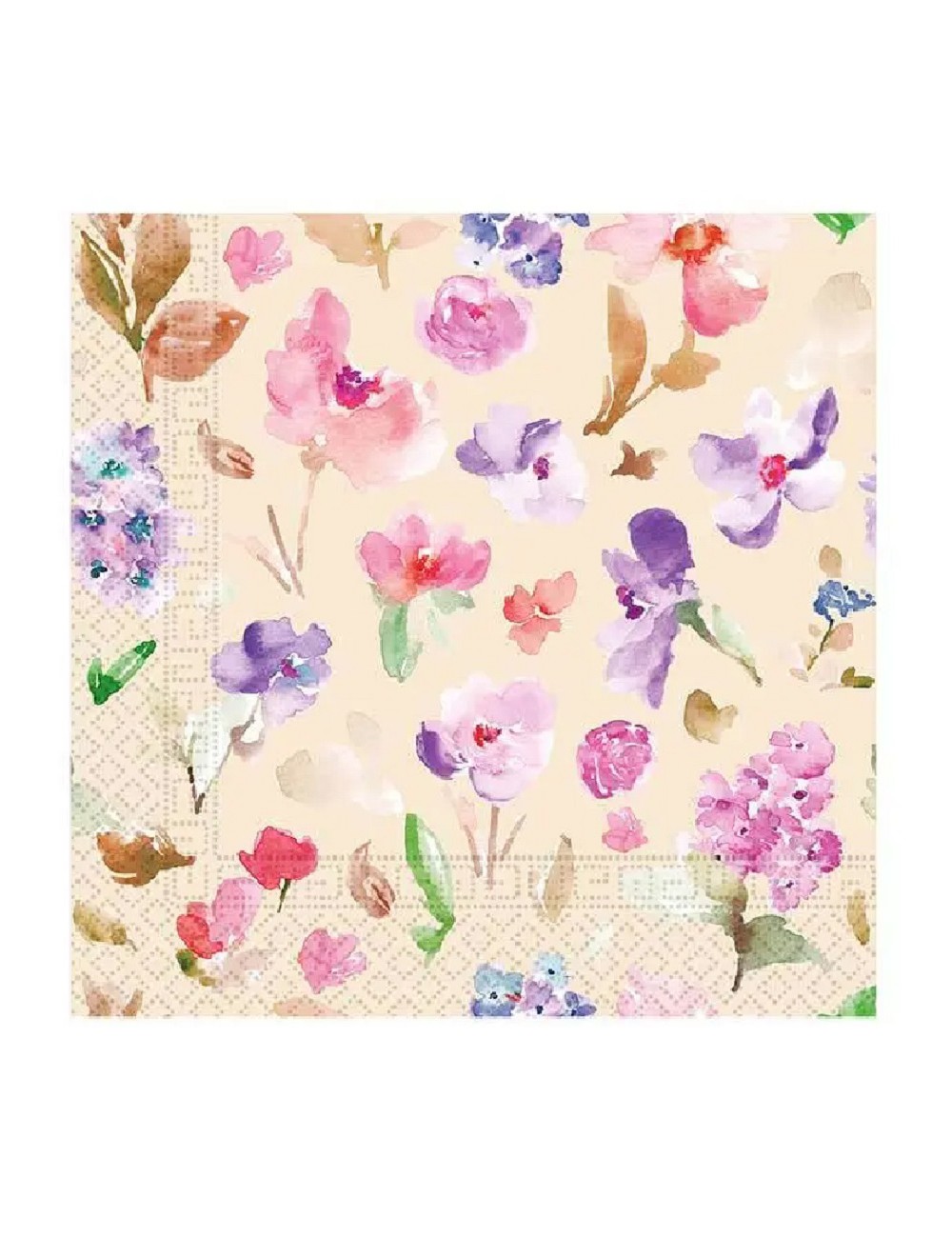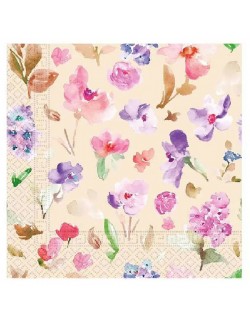 Set 20 servetele, Acuarela Flori, 33 x 33 cm (extins), din 3 straturi de hartie fina, imprimeu multicolor.