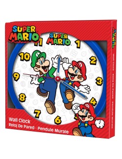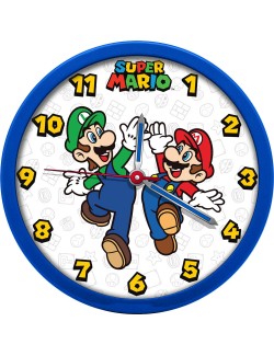 Ceas de perete, Super Mario, diametru 25 cm, fabricat din plastic, imprimeu multicolor cu Mario si Luigi, ambalat intr-o cutie speciala.