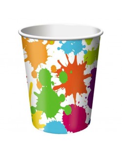 Set 8 pahare Art Party - Petrecere Pictori, capacitate 266 ml, din carton, de unica folosinta, imprimeu multicolor.