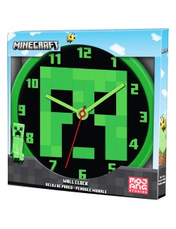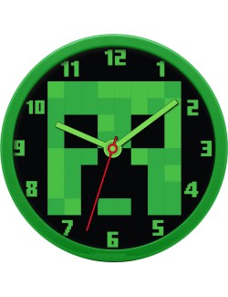 Ceas de perete, Minecraft Creeper, diametru 24 cm (inclusiv rama), fabricat din plastic, ambalat intr-o cutie speciala.
