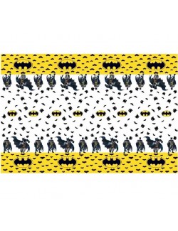 Fata de masa Batman, 120 x 180 cm, din plastic, multicolora, potrivita pentru petreceri tematice Batman.