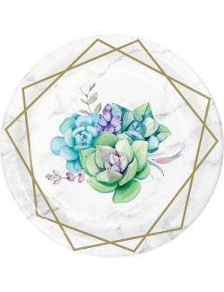 Set 8 farfurii Geometric-floral, diametru 17 cm, de unica folosinta, din carton, nu contin plastic, pentru petreceri tematice.
