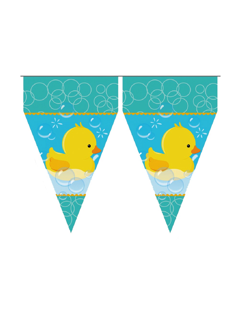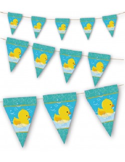 Ghirlanda Party Ratuste Bubble Bath, alcatuita din 9 fanioane multicolore, imprimate identic pe ambele parti, lungime 3 metri, dimensiuni fanion 28*19 cm.