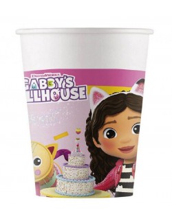 Set 8 pahare Gabby's Dollhouse - Casa de papusi a lui Gabby, 200 ml, din carton, de unica folosinta, perfecte pentru petreceri.