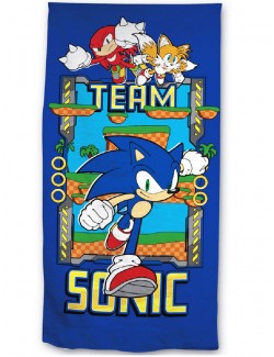 Prosop plaja, Sonic Team, dimensiuni 140 x 70 cm, microfibra (100% poliester), multicolor, imprimeu Sonic. Knuckles si Tails.
