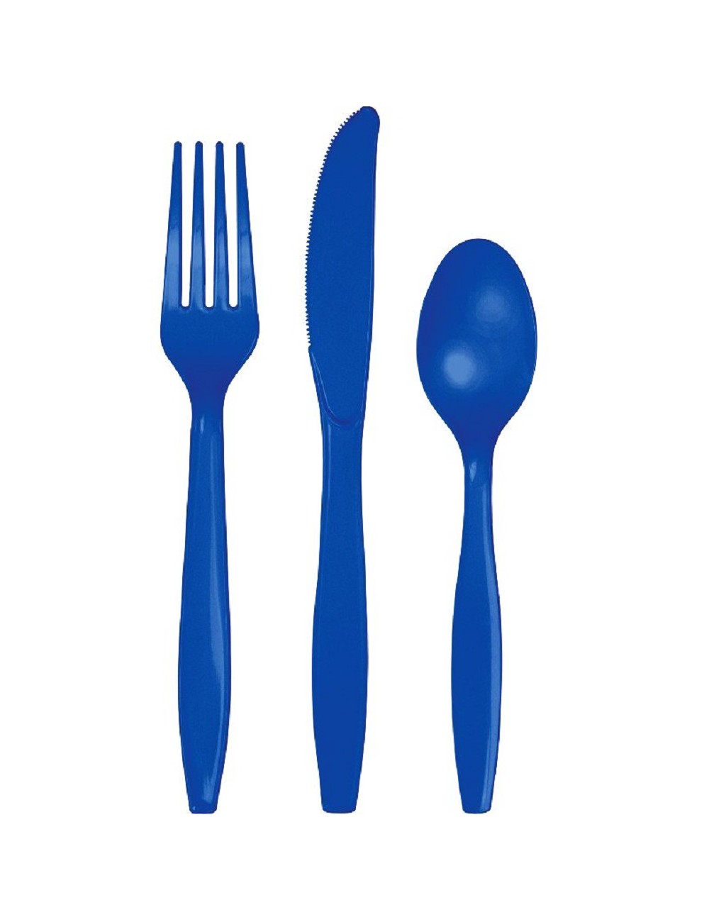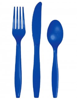 Set 24 tacamuri Albastru cobalt, din plastic rezistent, reutilizabile, contine 24 piese, din care 8 furculite, 8 cutite si 8 lingurite.