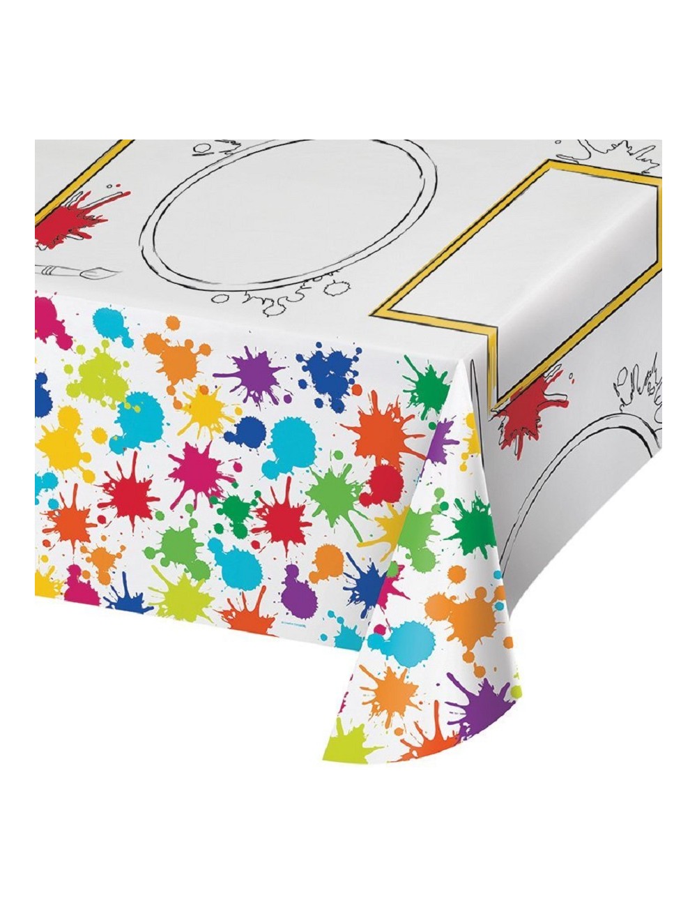Fata de masa hartie, Art Party, dimensiuni 137 x 243 cm, fond alb, imprimeu multicolor.