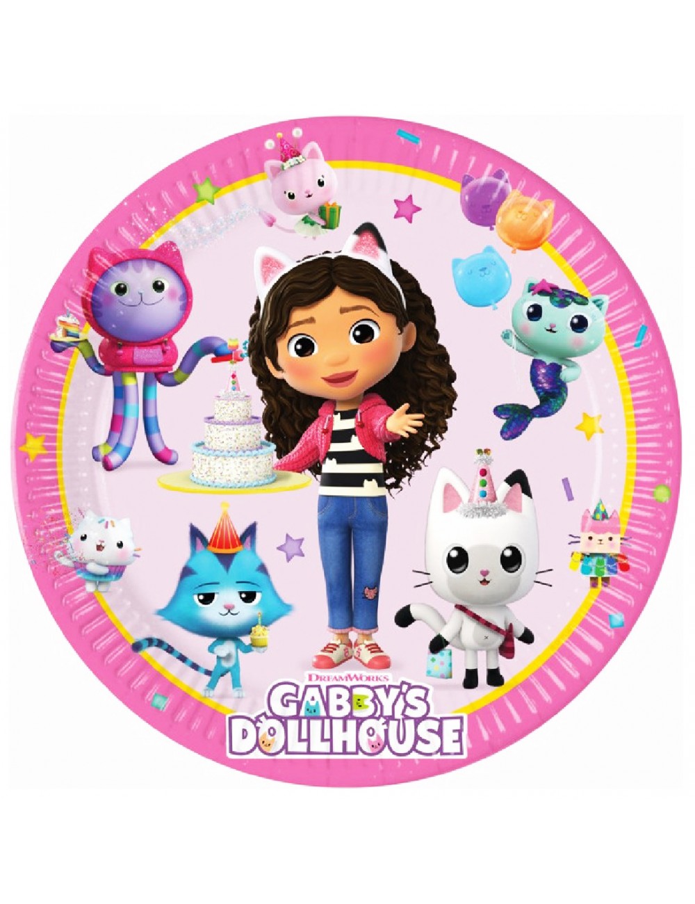 Set 8 farfurii Gabby's Dollhouse (next generation), diametru 23 cm, de unica folosinta, fabricate din carton, Gabby si pisicutele sale, nu contin plastic.