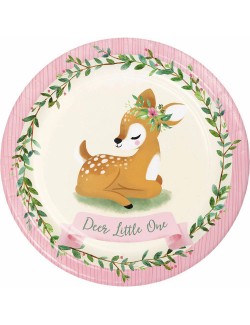 Set 8 farfurii Pui de caprioara, diametrul 22 cm, de unica folosinta, fabricate din carton, nu contin plastic, perfecte pentru petreceri cu tematica Bambi sau Animale din padure.