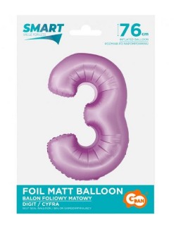 Balon folie, Cifra 3, mov lavanda, inaltime aprox. 76 cm (umflat), este potrivit pentru umplerea cu aer (nu pluteste) sau cu heliu (pluteste).