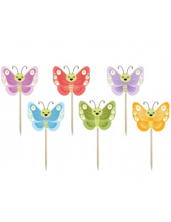 Set 6 Scobitori decorative, Fluturi colorati, inaltime aprox. 7,5 cm, din lemn si decoratiuni din hartie, cu forma de fluture.