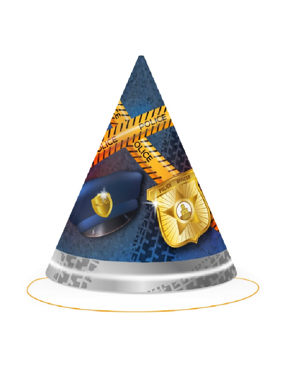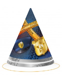 Set 6 coifuri Police party, din carton, prindere cu elastic, inaltime 16 cm, diametru 12 cm.
