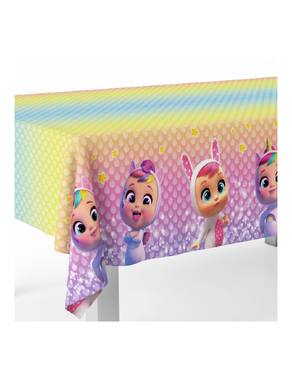Fata de masa Cry Babies Magic Tears, dimensiuni 120 x 180 cm, din plastic, imprimeu multicolor, pentru petreceri.