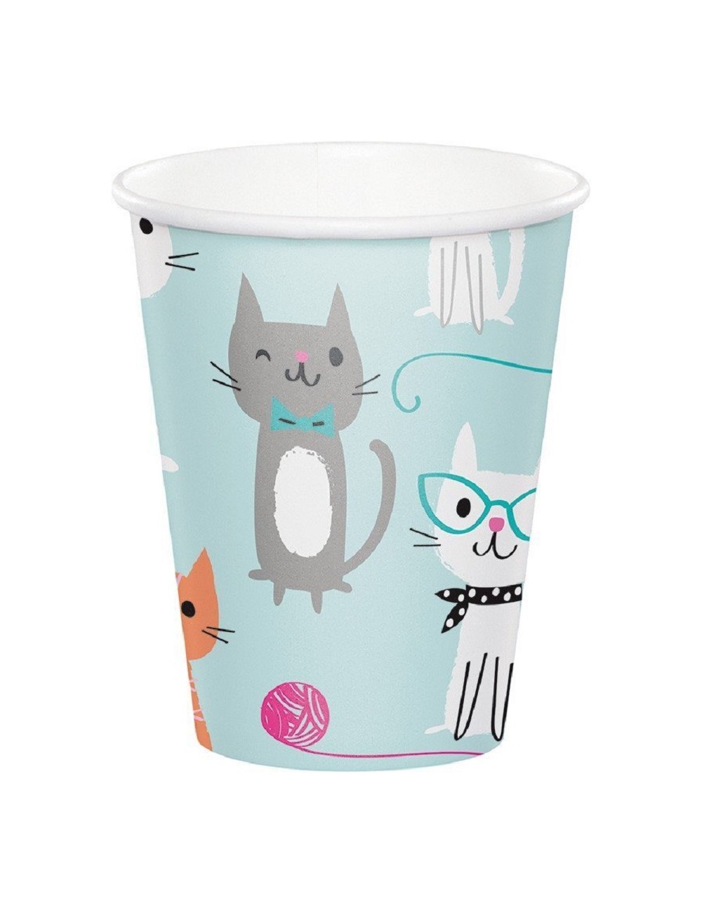 Set 8 pahare Party Pisicute, de unica folosinta. din carton ecologic, capacitate 250 ml.