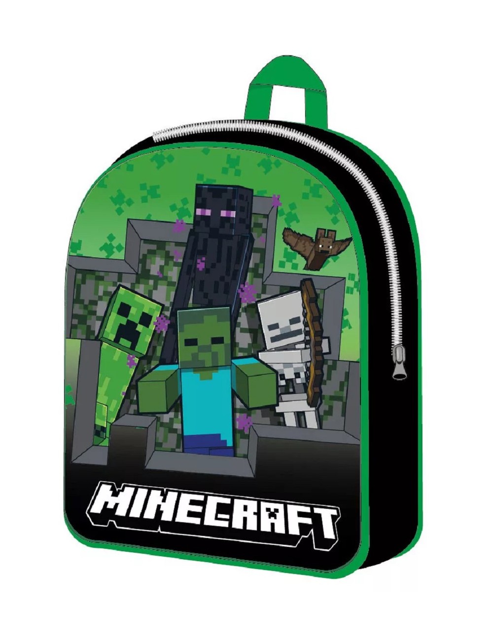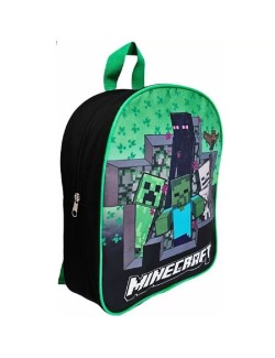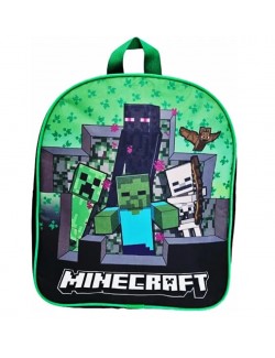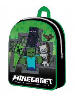 Ghiozdan gradinita, Minecraft Survival, dimensiuni 30x 26x 10 cm, compartiment unic inchis cu fermoar, maner la partea superioara si bretele reglabile.