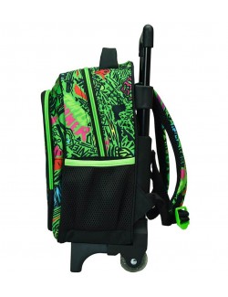 Ghiozdan troler Testoase Ninja, dimensiuni 30 x 25 x 15 cm, are un compartiment incapator si un buzunar frontal inchise cu fermoar, buzunare laterale si maner, este potrivit pentru gradinita.