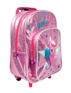 Ghiozdan troler, Unicorn Magic, dimensiuni 36 x 26 x 15 cm, are un compartiment incapator si un buzunar frontal inchise cu fermoar, este potrivit pentru gradinita sau plimbare.