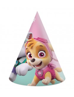 Set 8 farfurii Paw patrol, diametru 23 cm, de unica folosinta, fabricate din carton, imprimate cu catelusii Marshall, Chase, Everest, Skye si Rubble. Produsul nu contine plastic.