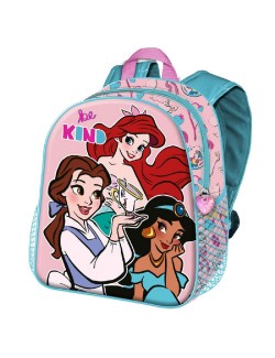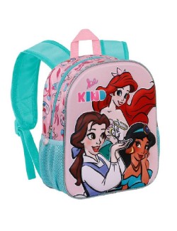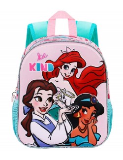 Ghiozdan 3D, Printese Disney Be kind, pentru gradinita, compartiment unic, inchidere cu fermoar, 2 buzunare laterale din plasa, bretele ergonomice, reglabile si un maner central.