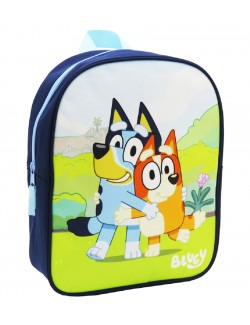 Ghiozdan gradinita, Bluey si Bingo, dimensiuni 30 x 25 x 10 cm, compartiment unic, inchidere cu fermoar, bretele reglabile si maner, confectionat din material ecologic, 100% poliester.