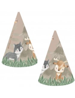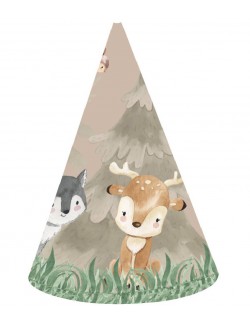Set 6 coifuri petrecere, Animale din padure - Forest animals Party, din carton, prindere cu snur, inaltime 15 cm, diametru 10 cm.