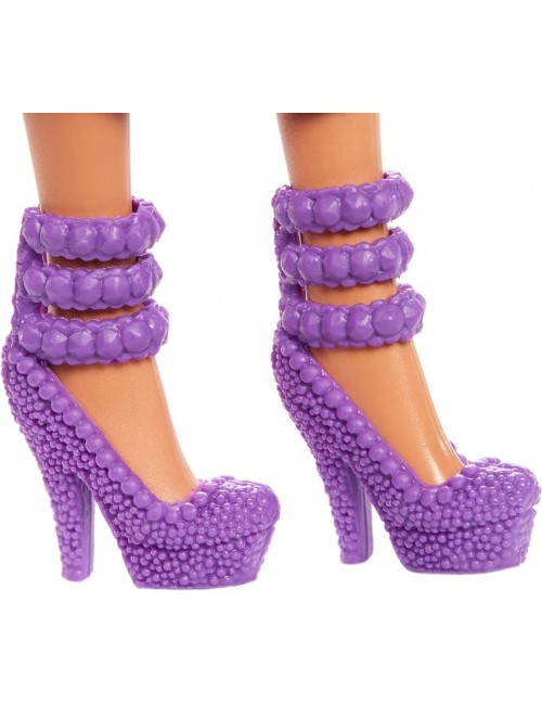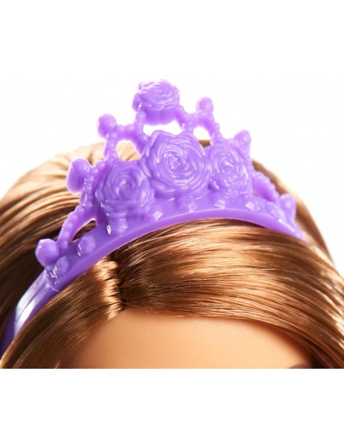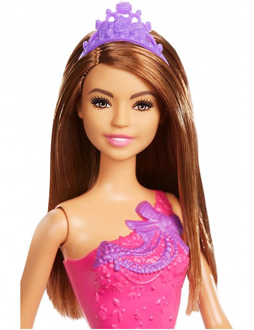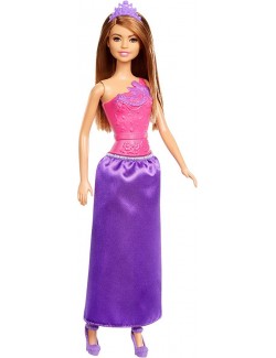 Papusa Barbie, par saten, inaltime 30 cm, vestimentatie culori fucsia-mov, fabricata din plastic.