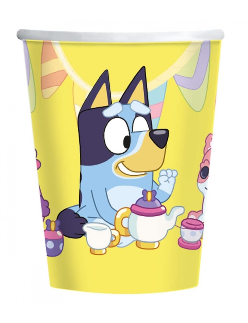 Set 8 pahare Party Bluey si Bingo, capacitate 266 ml, de unica folosinta, din carton, culori frumoase si vii.