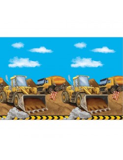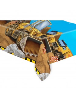 Fata de masa Utilaje constructii, dimensiuni 120 x 180 cm, din PVC 100%, imprimeu multicolor, perfecta pentru o petrecere tematica.