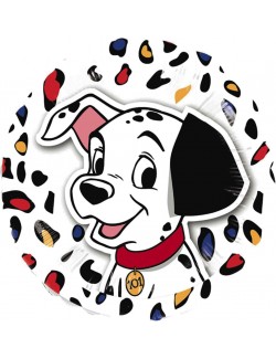 Balon folie, 101 Dalmatieni, aprox. 43 cm (dupa umflare), imprimeu identic fata-verso, poate fi umplut cu aer (nu pluteste) sau cu heliu (pluteste).