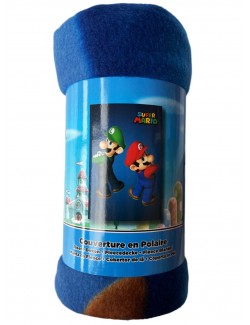 Paturica polar, Mario si Luigi, culoare albastra, dimensiuni 100 x 140 cm, 100% poliester, 180 gr/mp, imprimeu Mario.