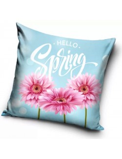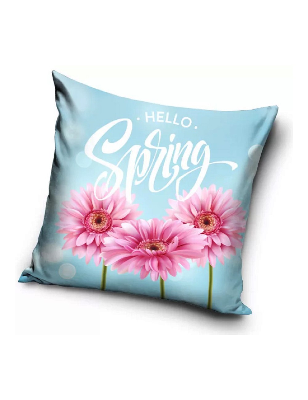 Fata de perna bleu, Hello Spring, dimensiuni 40 x 40 cm, material de calitate, imprimeu identic fata-verso, inchidere cu fermoar, 100% poliester.