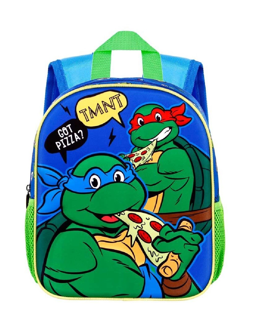 Ghiozdan 3D, Testoase Ninja, dimensiuni 31 x 26 x 11 cm, culori intense, material rezistent si usor de intretinut, 85% poliester, 15% EVA