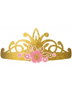 Set 8 Diademe aurii, Printese & Flori, pentru petreceri, din carton, prindere cu elastic la spate.