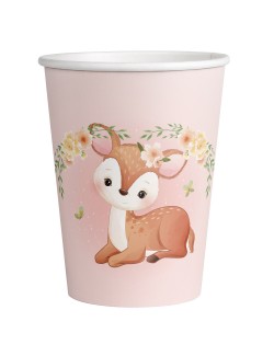 Set 8 pahare Pui de caprioara, din carton, capacitate 250 ml, de unica folosinta.