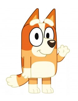 Perna decor, forma Bingo (Bluey), dimensiuni 31 x 21 cm, culoare portocalie, imprimeu pe o singura parte, 100% poliester.