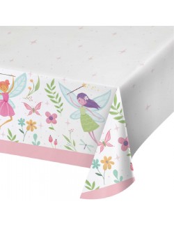 Fata de masa din hartie, Party Zane Forest Fairy, dimensiuni 137 x 259 cm, fond alb, imprimeu multicolor.