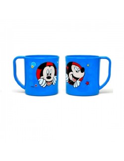 Cana din melamina albastra cu Mickey Mouse. Capacitatea canii este de 350 ml si dimensiunile sunt: 8,5*8 cm.