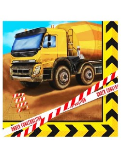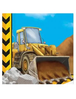 Set 20 servetele Utilaje Constructii , dimensiuni 33 x 33 cm (extins), din 2 straturi de hartie fina, imprimate cu un excavator care lucreaza intr-un santier si o betoniera.