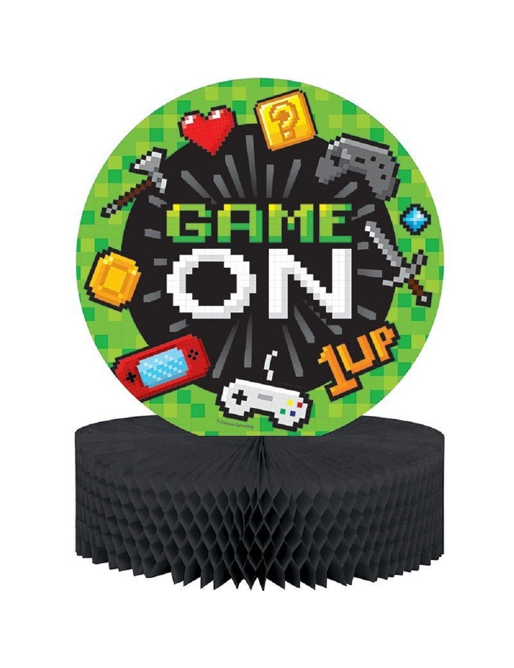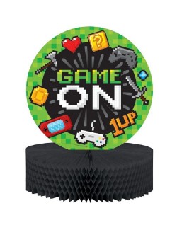 Decoratiune centru masa Game On - Gamng Party, inaltime 30 cm, diametru 23 cm, din carton, imprimeu multicolor.