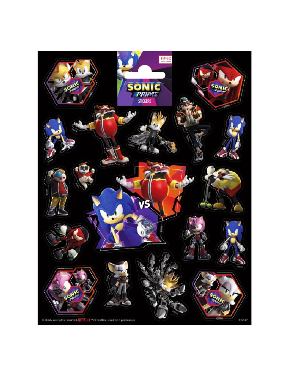 Autocolante / Stickere Ariciul Sonic si alte personaje Sonic Prime, multicolore, dimensiuni plansa: 156 x 200 mm.