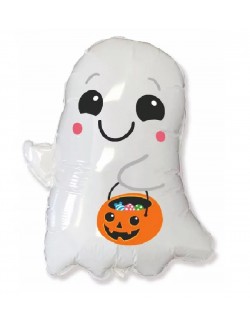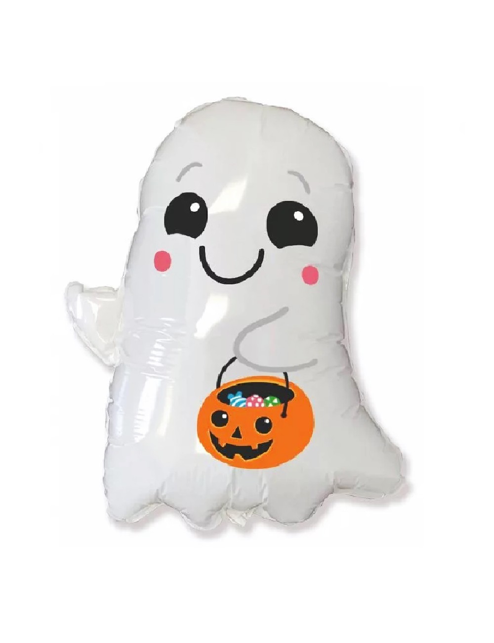 Balon folie, Fantoma cu cosulet, dimensiuni 75 x 64 cm-dezumflat, poate fi umplut cu aer (nu pluteste) sau cu heliu (pluteste).