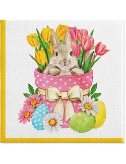 Set 20 servetele Iepuras Funny Bunny, dimensiuni 33 x 33 cm (extins), din 2 straturi de hartie, perfecte pentru masa de Paste sau alte ocazii.
