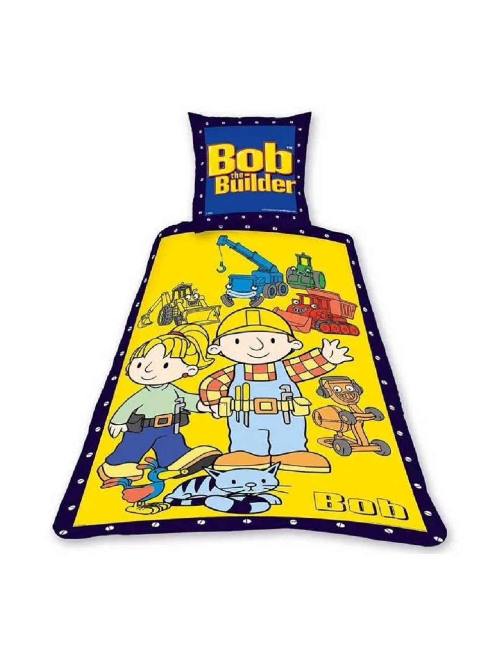 Lenjerie pat Micul Constructor Bob, bumbac 100% compusa din 2 piese: cearceaf pentru pilota (140 x 200 cm) si o fata de perna (80 x 80 cm), inchidere cu fermoar, imprimeu diferit fata-verso.