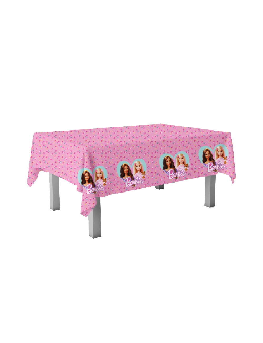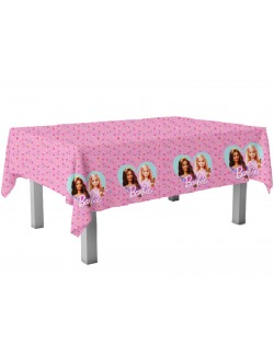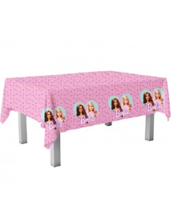 Fata de masa Barbie, dimensiuni 120 x 180 cm, culoare roz, 100% PVC, perfecta pentru petreceri.