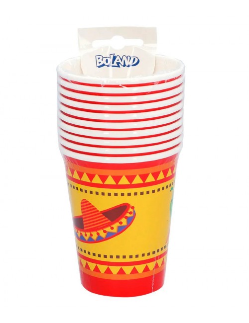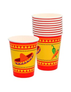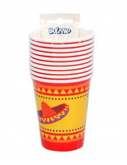 Set 10 pahare Petrecere Mexicana, din carton, capacitate 210 ml, inaltime 9,5 cm, de unica folosinta, pentru petreceri cu tematica mexicana.
