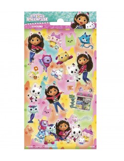 Autocolante glitter, Gabby's Dollhouse (Casa de papusi a lui Gabby), o plansa cu dimensiunile 10 x 20 cm cu imagini ale personajelor indragitului serial.