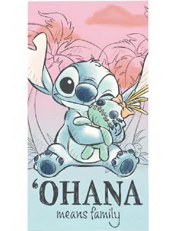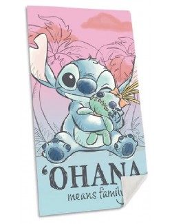 Prosop plaja Stitch, bumbac 100%, dimensiuni 140 x 70 cm, culori pastelate, roz-bleu, densitate 306 gr/mp.